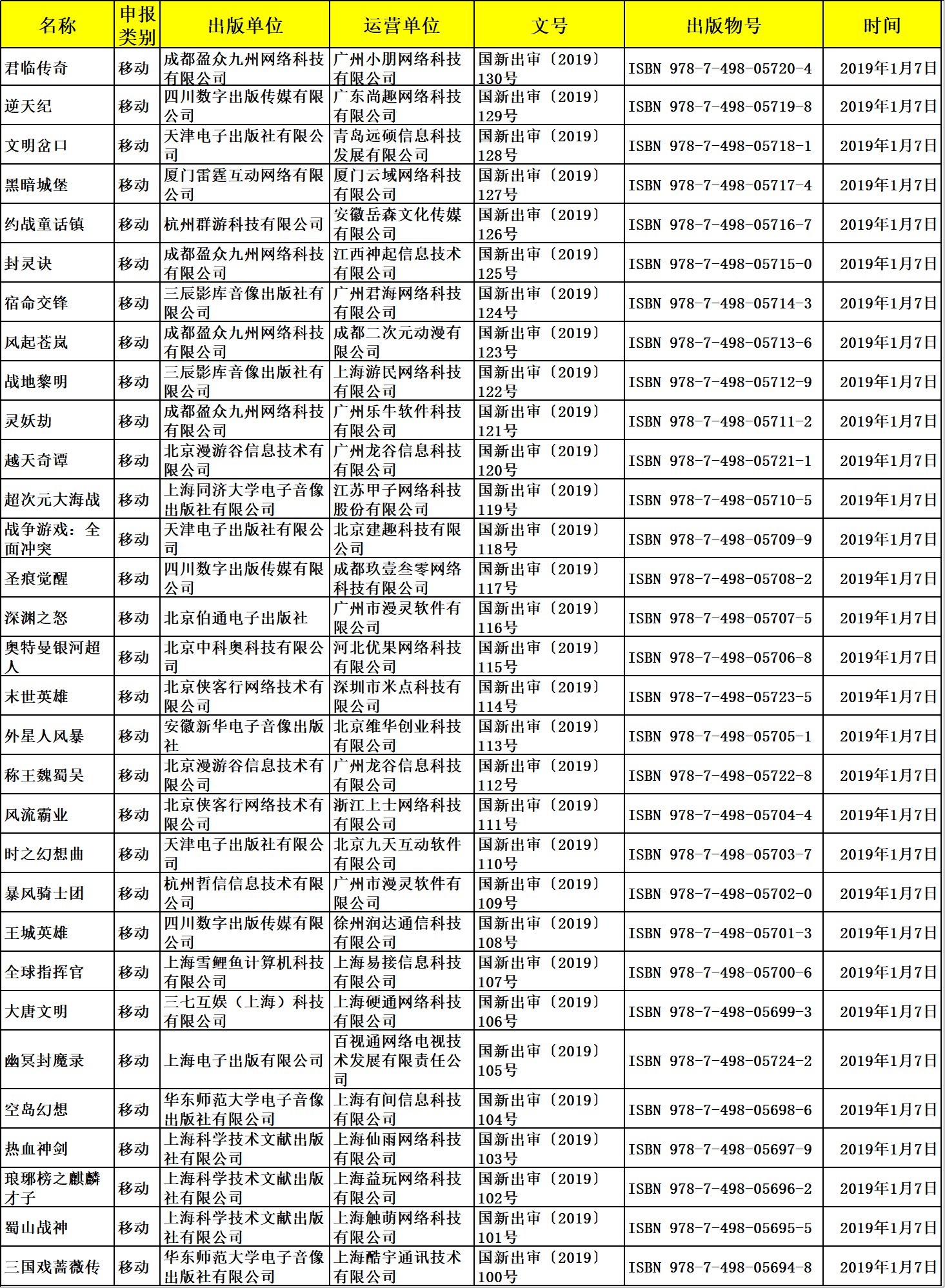 2019年1月份國產(chǎn)網(wǎng)絡(luò)游戲?qū)徟畔?/h1>